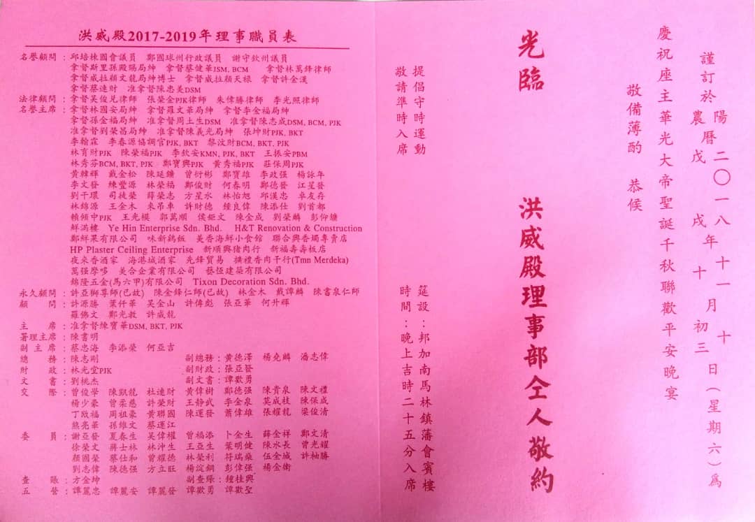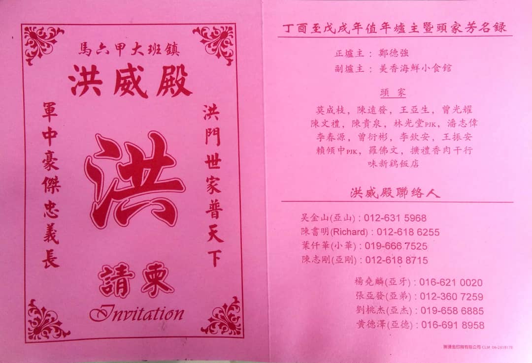 马六甲大班镇洪威殿最新消息 HONG WEI DIAN LATEST NEWS